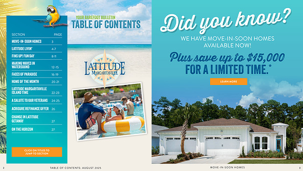 MOVE-IN-SOON HOMES 3 LATITUDE LIVIN’ 4-7 FINS UP! FUN DAY 8-11 MAKING WAVES IN
